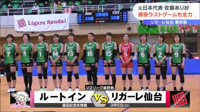 女子バレーボールV2リーグのリガーレ仙台がシーズン3月5日、最終戦を迎えました。この試合での引退とチーム退団を発表している佐藤あり紗選手兼監督にとっては現役ラストゲーム!チームの功労者は最後まで勝利を目指しました。