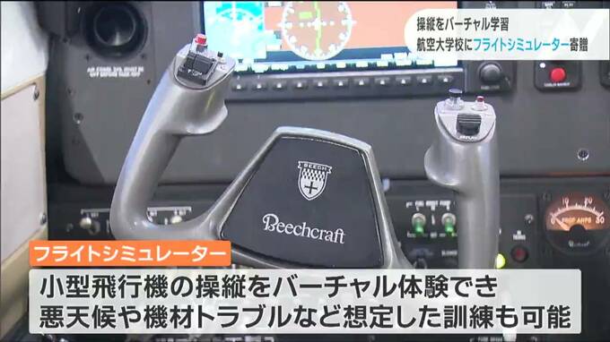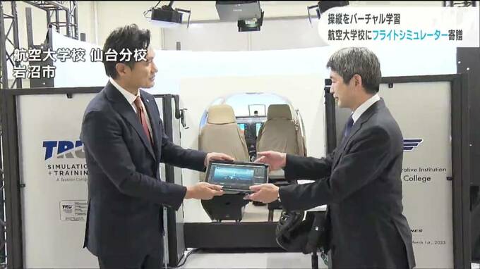 パイロットの養成に役立てられます。飛行機の操縦をバーチャルで学ぶことが出来るフライトシミュレーターが、宮城県岩沼市の航空大学校に寄贈されました。