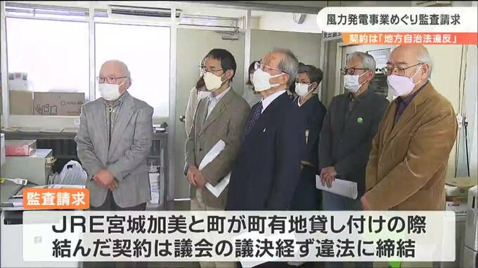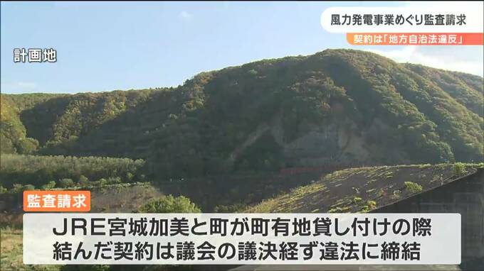 宮城県加美町で進められている風力発電事業を巡り、町と企業とが町有地の貸し付けの際に結んだ契約は「地方自治法違反にあたる」として、地元住民が14日、町に対し、町有地利用の一時停止などを求める住民監査請求を行いました。