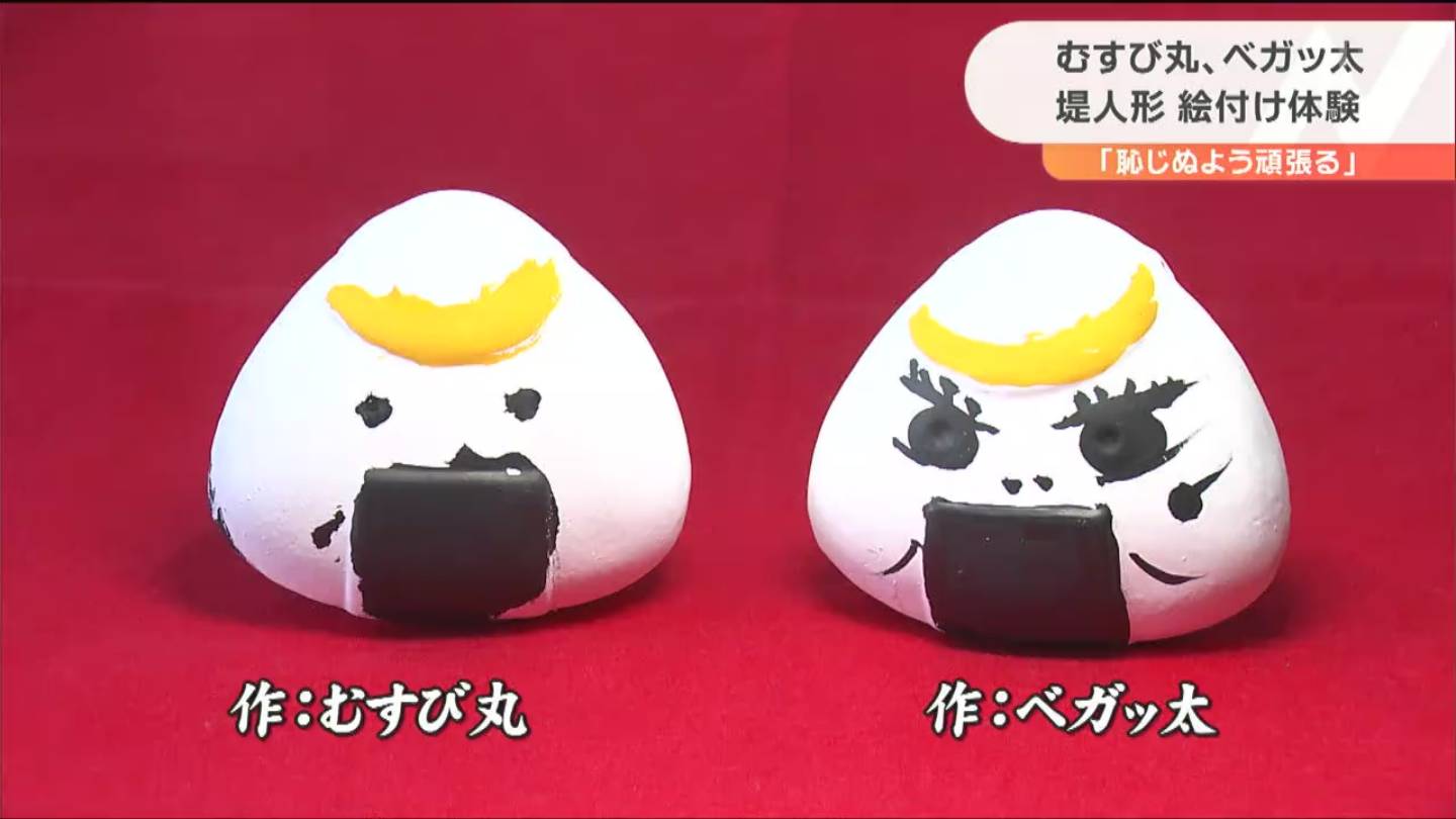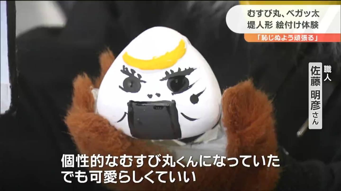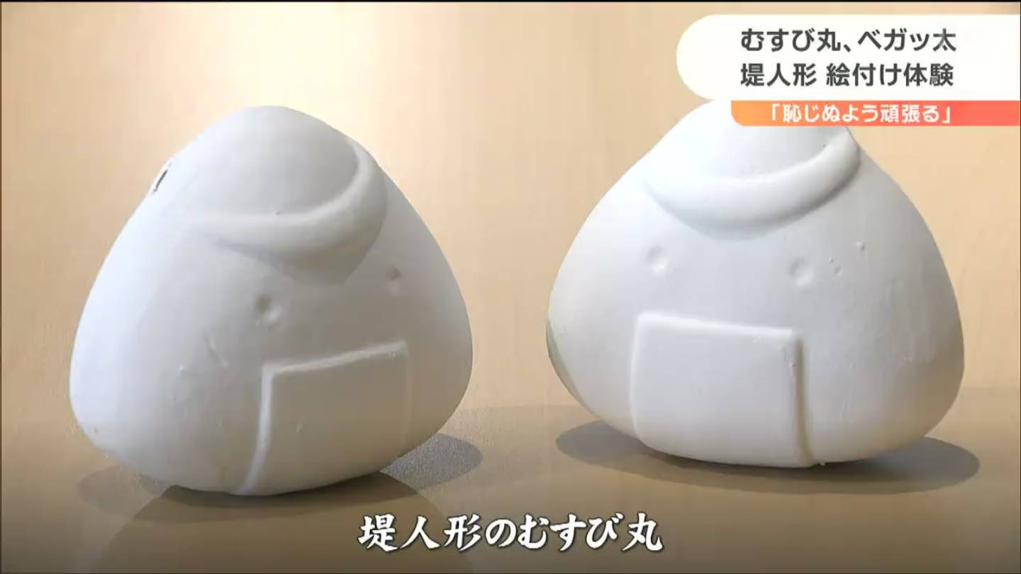 会場では、職人による実演も行われていますが、14日は特別企画としてむすび丸とベガルタ仙台のベガッ太が堤人形の絵付けを体験しました。