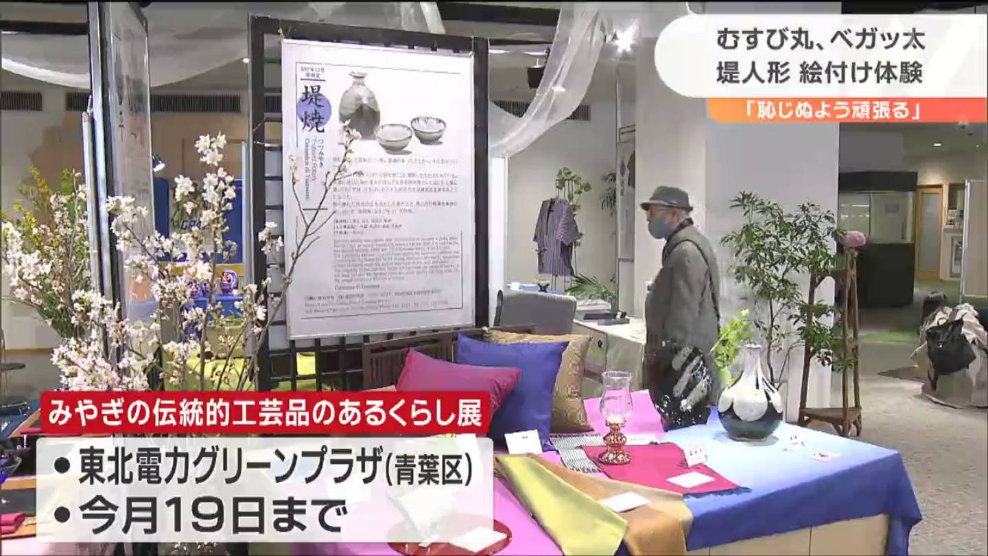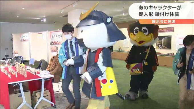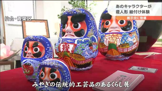 宮城の伝統的工芸品を一堂に集めた展示会が、14日から仙台で始まりました。会場では、職人による実演も披露されていますが、特別にあのキャラクターたちが堤人形の絵付けを体験しました。
