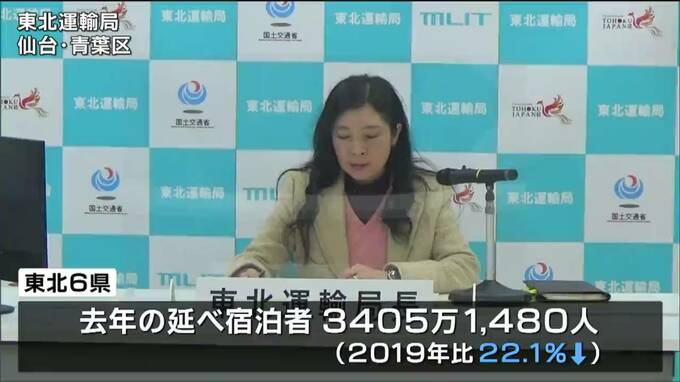 去年1年間の東北6県の宿泊者数は、コロナ禍前2019年のおよそ▼8割に留まりました。