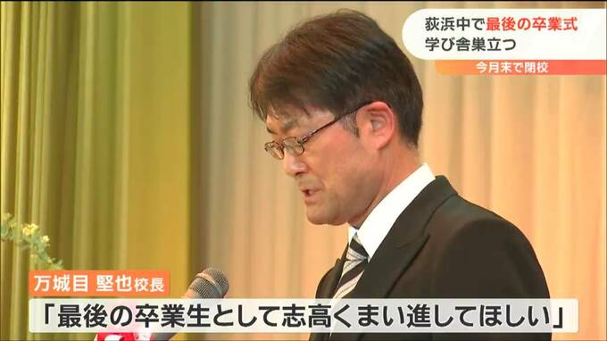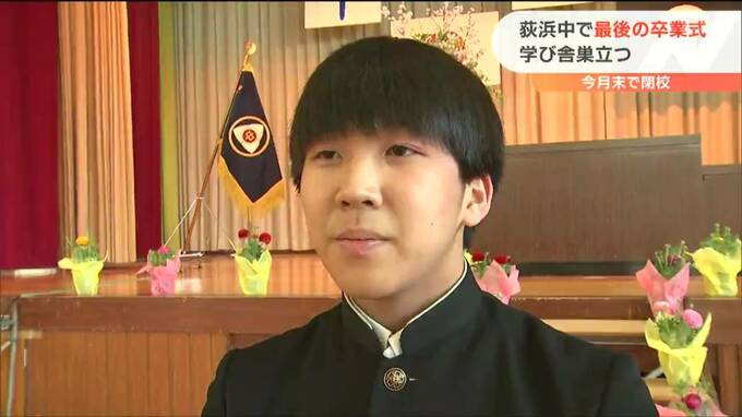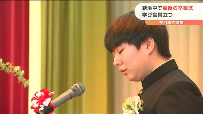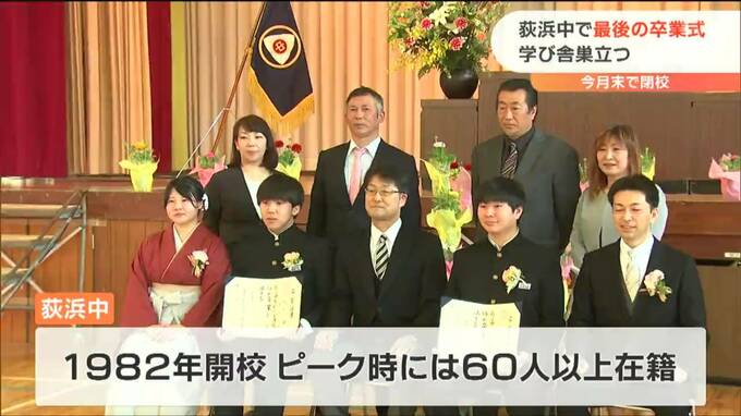 全校生徒が3人しかいない宮城県石巻市の牡鹿半島にある荻浜中学校で、閉校を前に最後の卒業式が行なわれ、卒業生2人が学び舎を巣立ちました。