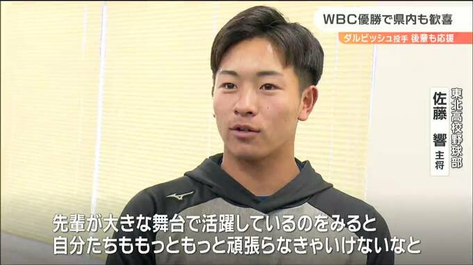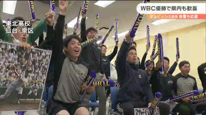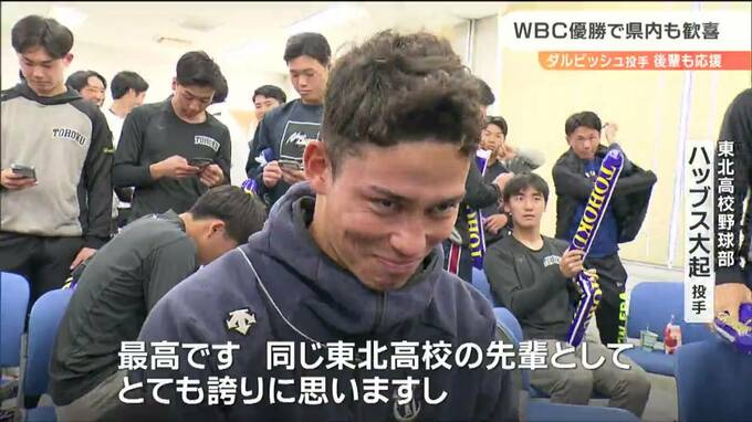 侍ジャパンメンバー、ダルビッシュ有投手の母校、東北高校では後輩の野球部員らが決勝の行方を見守りました。
