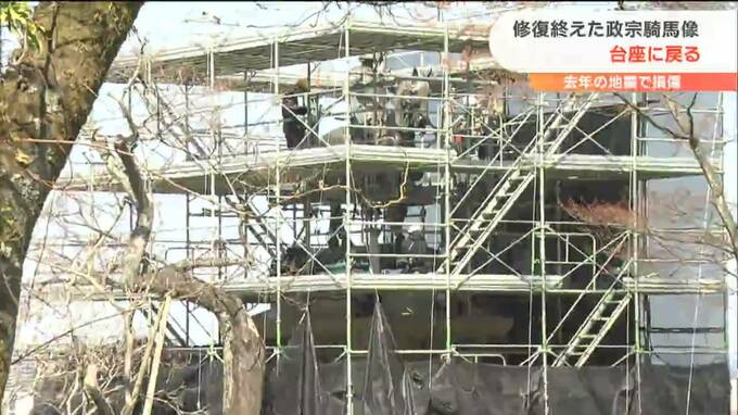 このため、去年7月からおよそ8か月間かけて、東京の専門業者で溶接作業のほか補強対策が施され21日、仙台城に帰還。22日、もともとあった台座に乗せられました。