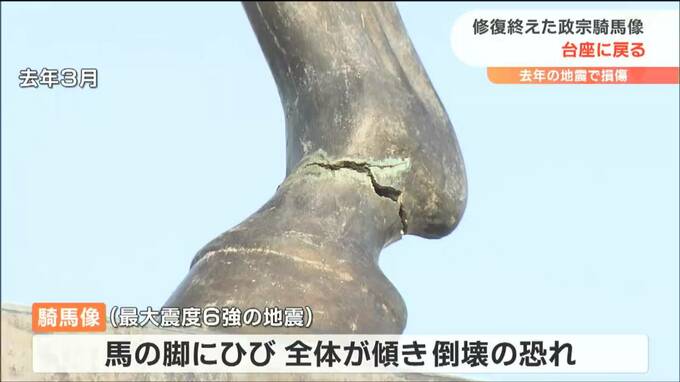 騎馬像は去年3月の福島県沖を震源とする最大震度6強の地震で、馬の脚にひびが入ったうえ全体が傾くなどの被害を受け倒壊の恐れもありました。