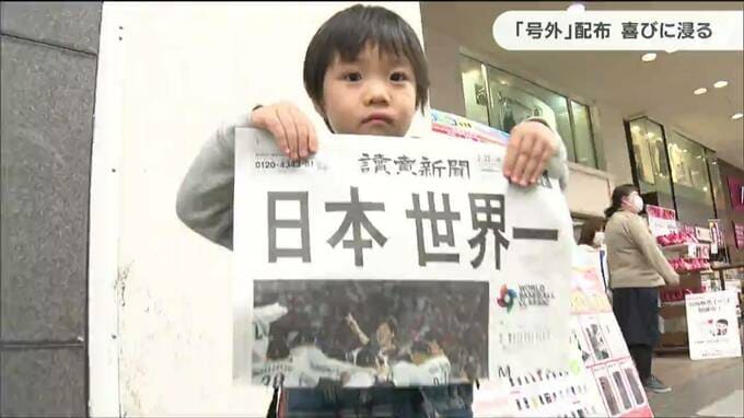 【WBC】侍ジャパン優勝で仙台でも号外“2000部30分でなくなる”「最高です!6回言わないと」 2023年3月22日(水) 18:20 国内 WBCで侍ジャパンが優勝し、仙台でも号外が配られました。「号外でーす!」仙台市青葉区のクリスロード商店街では、午後1時半すぎに「日本世界一米(アメリカ)に3―2」という大きな見出しをつけた新聞号外が配られ…