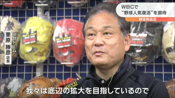 野球用品店では侍ジャパンの快挙で野球人気復活を期待しています。