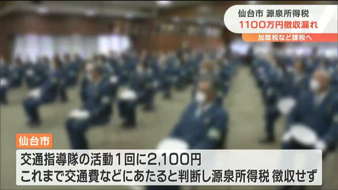 “またミス”仙台市交通指導隊員への報酬「1100万円余り」源泉徴収漏れ 2023年3月24日(金) 16:43 国内 通学路などで活動を行う交通指導隊への報酬を巡り、仙台市が長年、源泉所得税を徴収せず未納になっていることが分かりました。徴収漏れは少なくとも1100万円余り、仙台市には不納付加算税などが課されます。仙台市…