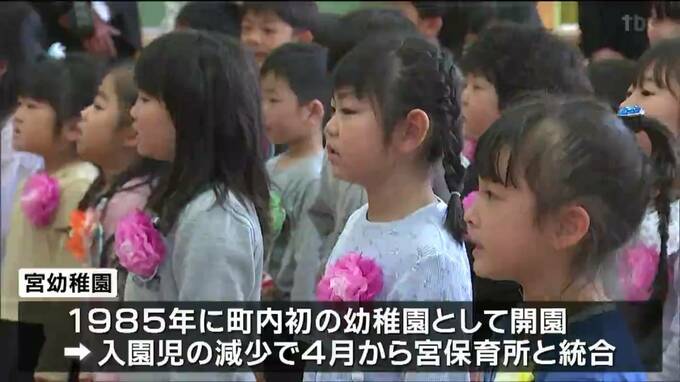 宮幼稚園は、1985年に町内初の幼稚園として開園しました。しかし、年々入園児が少なくなっていることから、4月から宮保育所と統合することになりました。