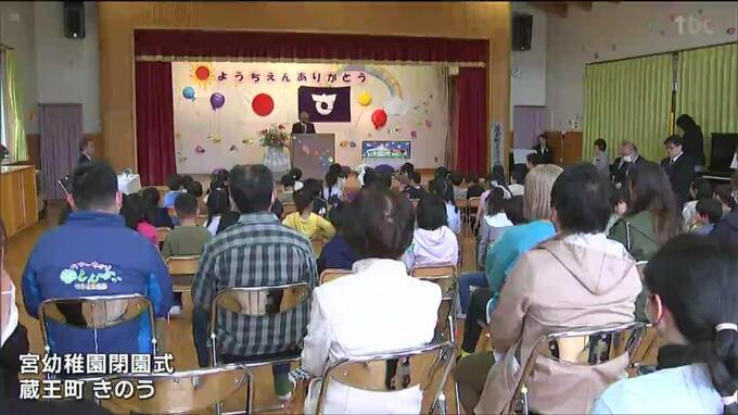 宮城県蔵王町の宮幼稚園が今月いっぱいで閉園することになり、24日、閉園式が行われました。