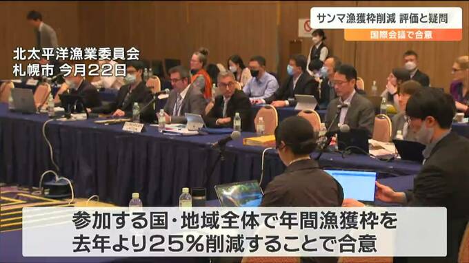 日本や中国、ロシアなどがサンマの資源管理を話し合う国際会議では、参加する国と地域全体での年間の漁獲枠を、去年より▼25パーセント削減することで合意しました。2021年、▼40パーセントの削減を決めて以来の規制強化です。