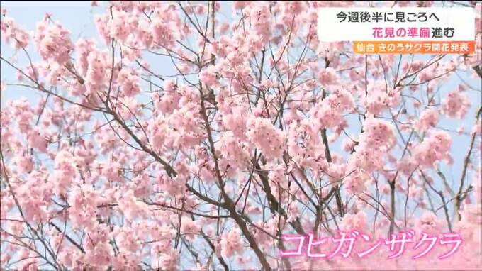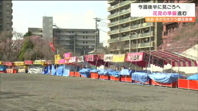 仙台では今週後半にも見頃を迎えるとみられ、市内の公園では4年ぶりの花見イベント再開に向け準備も進められています。