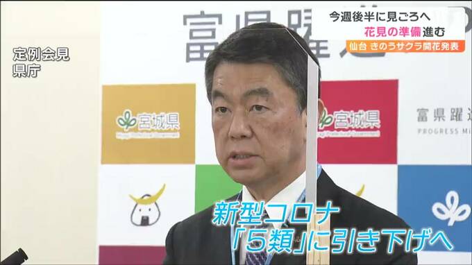 今年は県内各地のサクラの名所で4年ぶりに花見に合わせたイベントが再開されます。これについて村井知事は、5月に新型コロナの感染法上の位置づけが「5類」に引き下げられることを踏まえマナーを守って楽しんでほしいと述べました。