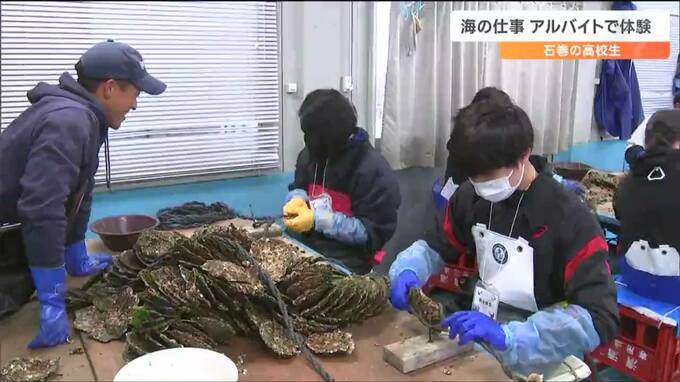 高齢化や担い手不足が続く中で、水産業の魅力を知ってもらおうという取り組みです。若者に海の仕事をアルバイトで体験してもらう取り組みが宮城県石巻市で始まり、高校生たちがカキ漁師の仕事を手伝いました。