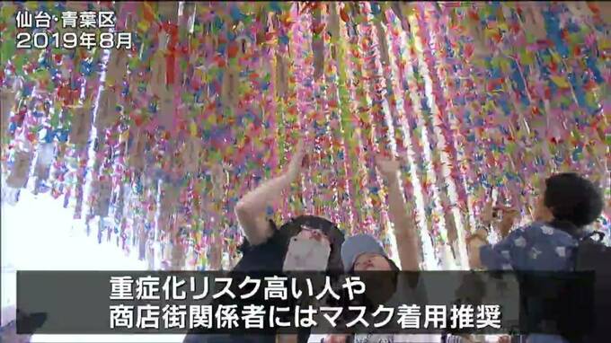 一方で、高齢者や基礎疾患のある人など重症化リスクが高い人や、商店街関係者にはマスク着用を推奨することとしました。今年の仙台七夕まつりは8月6日から8日まで開催されます。