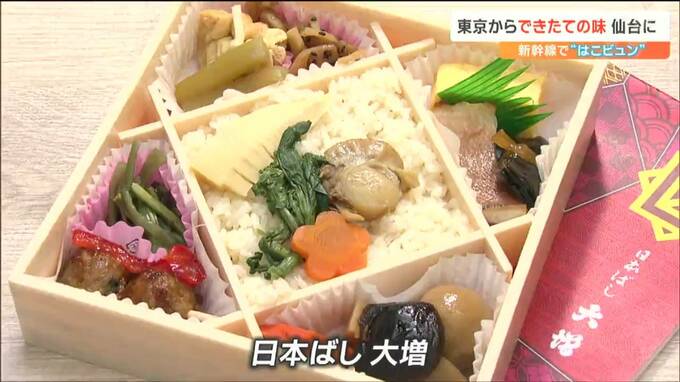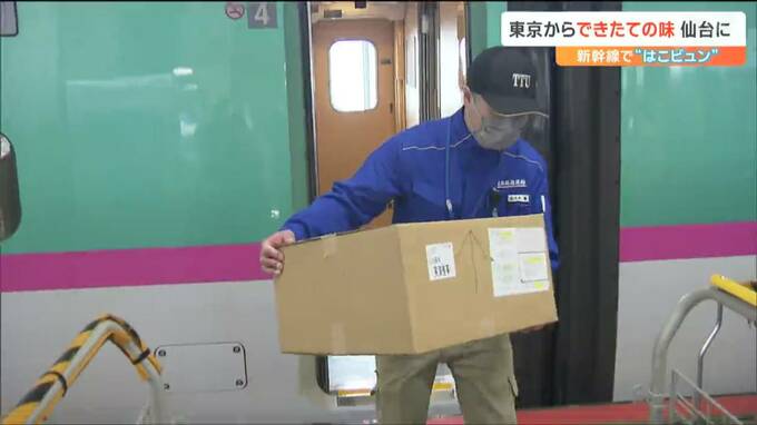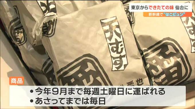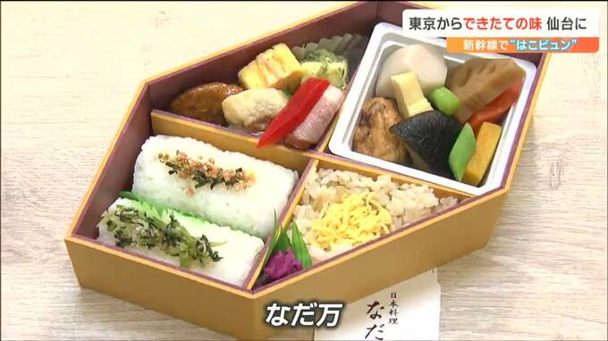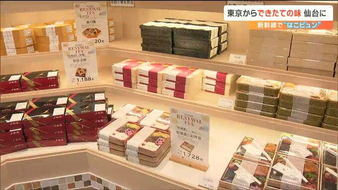 東京都内で朝作られたばかりの人気の弁当などを新幹線で運ぶ定期輸送が始まりました。仙台市内の百貨店には、できたての商品が並び、人気の味を求めて大勢の人が訪れました。