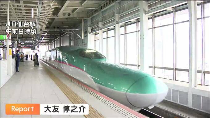 「東京から弁当など人気商品を載せた新幹線が仙台駅に入ってきました」