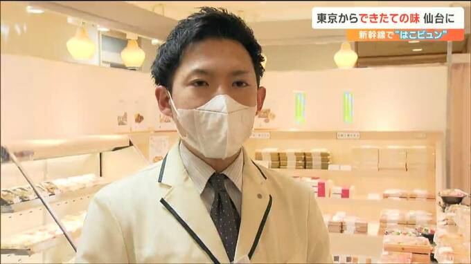 藤崎ではこれまで東京からの商品をトラックで運んでいたため輸送に5時間以上かかっていましたが、新幹線を使いおよそ2時間20分で当日の朝作られたばかりの商品が届くということです。
