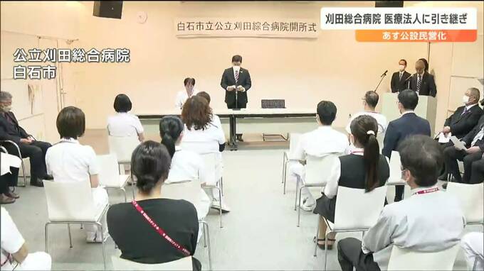 あすから公設民営化される宮城県白石市の公立刈田総合病院で、これまで病院を運営してきた組合から、新たに指定管理者となる医療法人への引き継ぎ式が行われました。