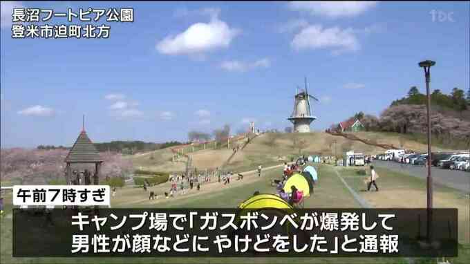 「ガスボンベ爆発」キャンプで朝食準備中 男性3人やけど 宮城・登米市 2023年4月2日(日) 13:24 国内 2日朝、登米市内のキャンプ場でガスボンベが爆発し男性3人が顔などに軽いやけどをしました。2日午前7時すぎ、登米市迫町北方の長沼フートピア公園内にあるキャンプ場で「ガスボンベが爆発して男性が顔などにやけど…