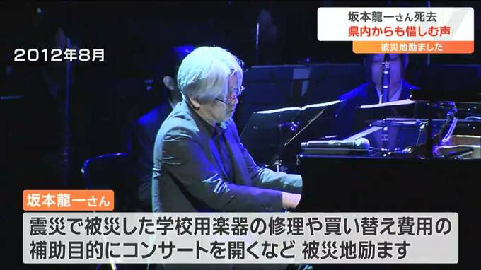 3月、71才で亡くなった坂本龍一さんは、東日本大震災で被災した学校用楽器の修理や買い替え費用の補助を目的にコンサートを開くなど被災地を励まし続けました。