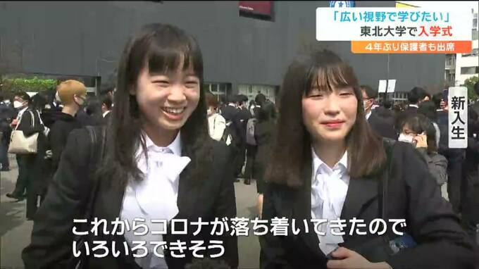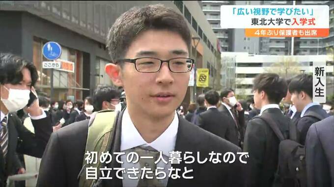 東北大学の入学式が仙台で行われ、およそ5000人の新入生が学生生活をスタートさせました。今年は4年ぶりに保護者も出席して式が行われました。