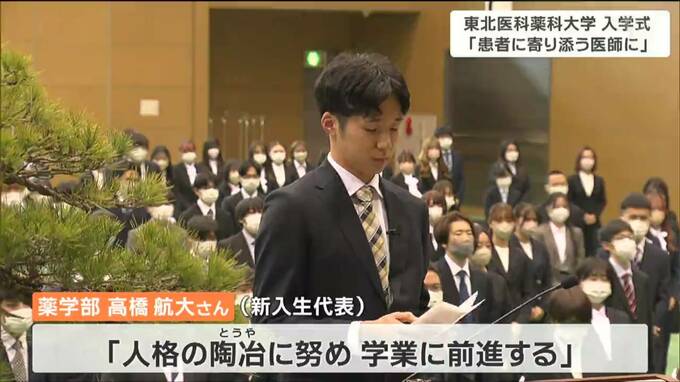 仙台市の青葉体育館で行われた入学式は、去年に引き続き対面で行われ、大野勲学長が「自分の将来の姿を想像し、勉学に励んでほしい」と激励すると、新入生を代表して薬学部の高橋航大さんが「人格の陶冶につとめ学業に前進する」と誓いの言葉を述べました。