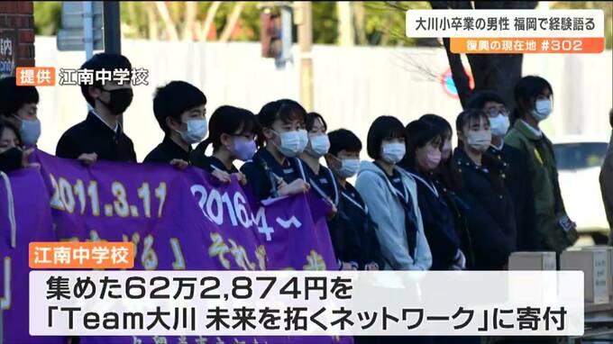 「いままで東日本大震災について、江南中学校が長年行ってきた募金活動で集まったお金を寄付したいと思います」