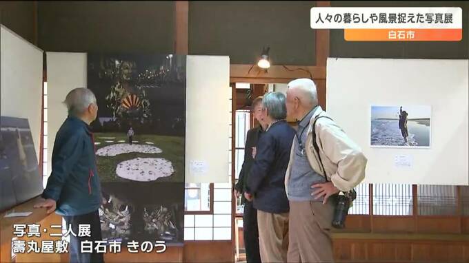 白石市にある「壽丸屋敷」には、県内に住む2人のアマチュア写真家が人々の暮らしや四季折々の景色を捉えた写真45点が展示されています。