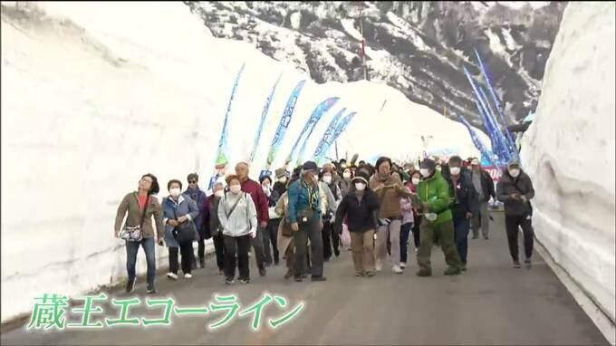 冬季閉鎖中の蔵王エコーラインの開通を前に「雪の回廊」を歩いて楽しむイベントが、7日から始まり観光客らで賑わいました。