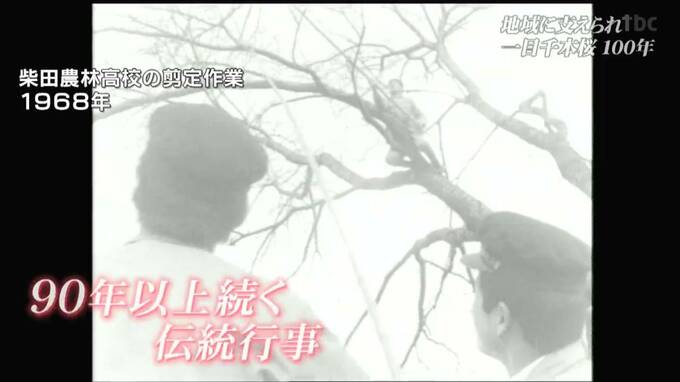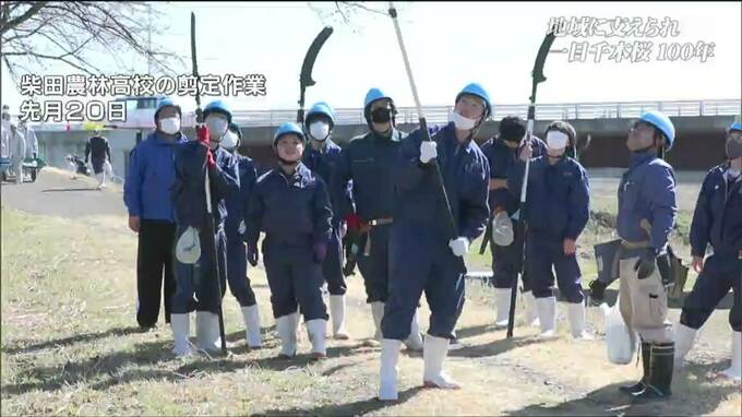 3月20日、柴田農林高校の生徒たちが剪定作業を行いました。枝が密集して花が咲かなくなるテングス病から木を守るための大切な作業です。