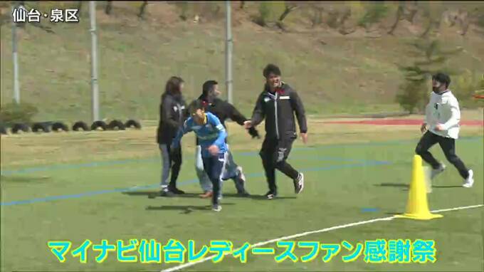 女子プロサッカーのマイナビ仙台レディースは9日、ファンイベントの運動会でサポーターと一緒に汗を流しました。