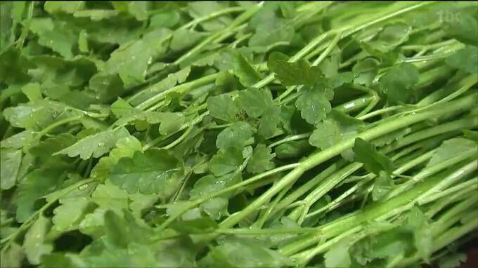 セリの産地として知られる石巻市河北地区では農家の高橋正夫さんが、朝、50センチほどに育った「葉セリ」を鎌で刈り取っていきました。