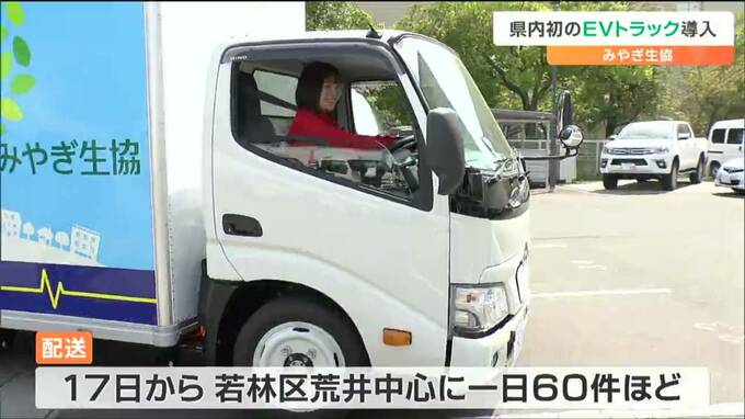 みやぎ生協は、今後EVトラックの台数を増やすことを検討しています。配送は17日から始まり若林区荒井地区を中心に1日に60件ほど配送するということです。
