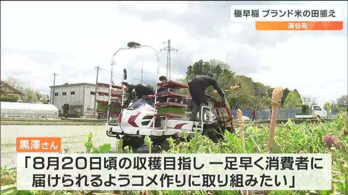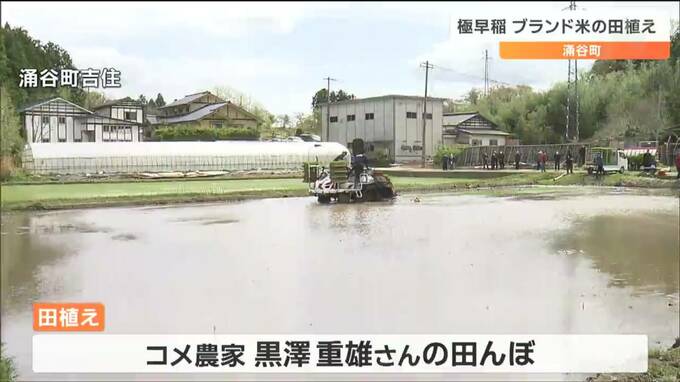 宮城県涌谷町では、普通のコメよりも1か月ほど生育が早い極早稲のブランド米の田植えが始まりました。
