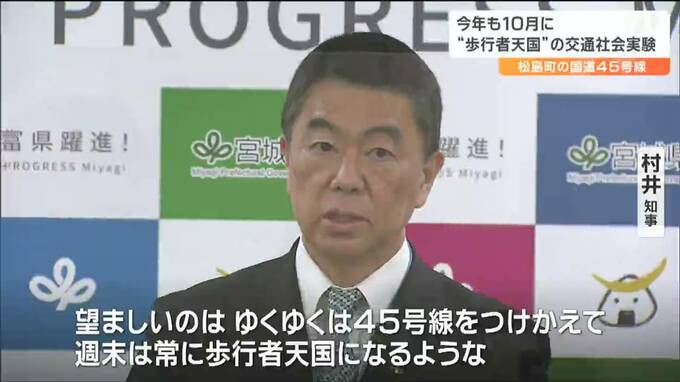 宮城県は、観光客でにぎわう松島町の国道45号線を通行止めにして、歩行者天国にする交通社会実験を去年に引き続き今年も10月に行うことになりました。