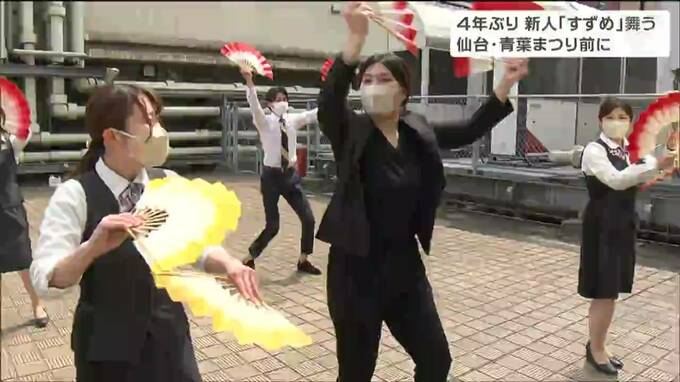 来月開催される「仙台・青葉まつり」を前に仙台市青葉区の百貨店では、21日から4年ぶりとなるすずめ踊りの練習が始まりました