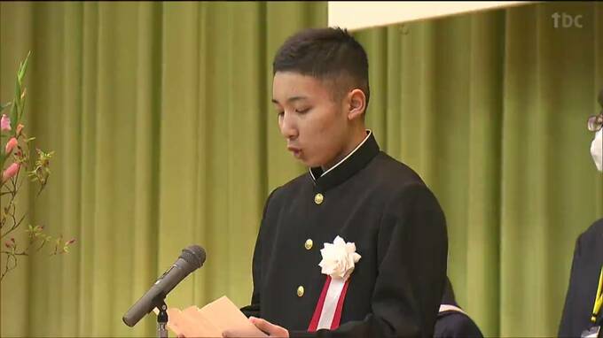 続いて、笹川清治校長が「みんなの力で行きたくなる学校、通いたくなる学校をつくっていきましょう」と児童生徒を励ましたあと、児童生徒の代表4人が抱負を述べました。