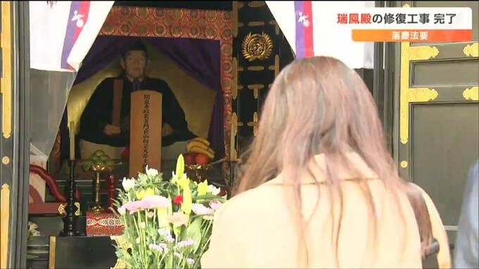 「伊達なる美が再現されたわけございます」瑞鳳殿の修復完了で落慶法要 仙台 2023年4月24日(月) 18:20 国内 仙台藩祖、伊達政宗を祀った仙台市の瑞鳳殿で行われていた本殿と木像の修復工事が完了しました。24日は工事の完了を祝って落慶法要が営まれました。後藤舜キャスター:「修復工事を終えた瑞鳳殿の本殿。黒漆や金箔…