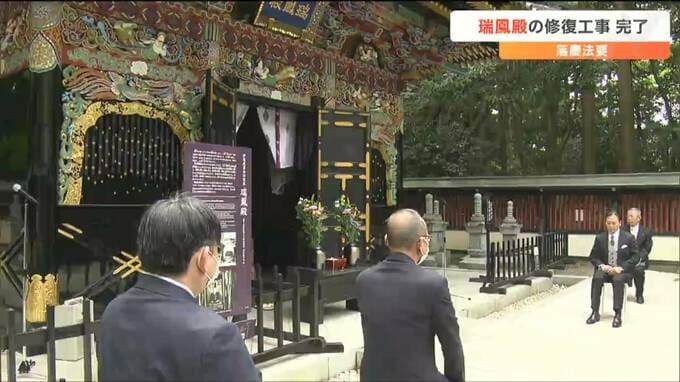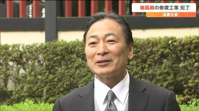 仙台市青葉区にある瑞鳳殿では、修復工事の完了を祝う落慶法要が営まれ、伊達家十八代当主の伊達泰宗さんら関係者6人が参列しました。