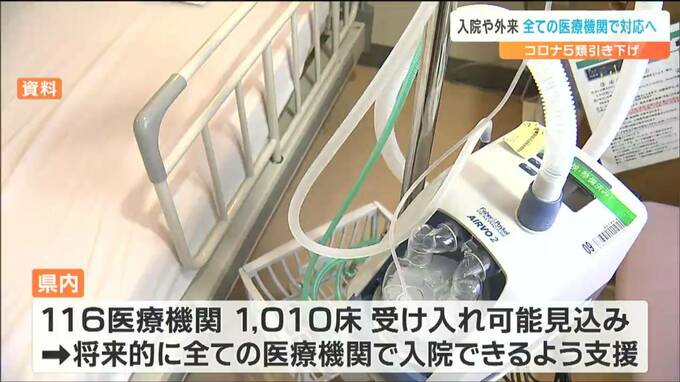 県内では、現在、入院患者を受け入れる病床として42医療機関、622床を確保していますが、5類移行後はより幅広い医療機関で入院を可能とします。116医療機関、1010床で受け入れが可能となる見込みで、県は、最終的に全ての医療機関で入院できるよう支援します。