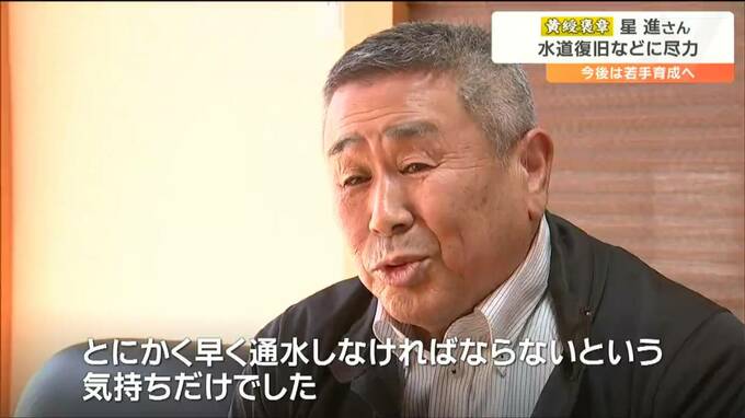 宮城県石巻市の水道管設備会社ミヤケンの会長、星進さん72歳。今回、黄綬褒章に選ばれました。
