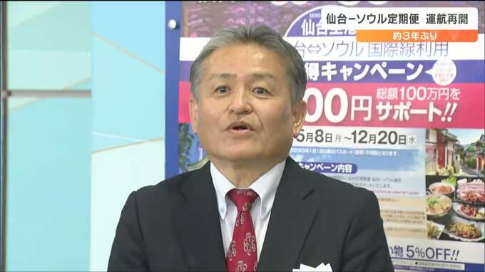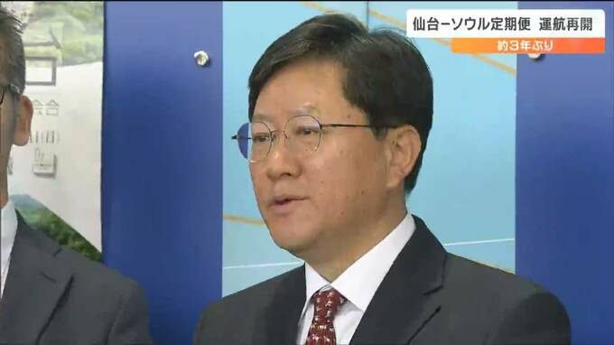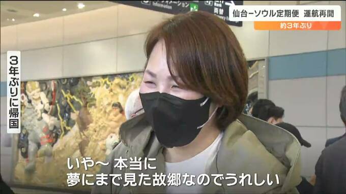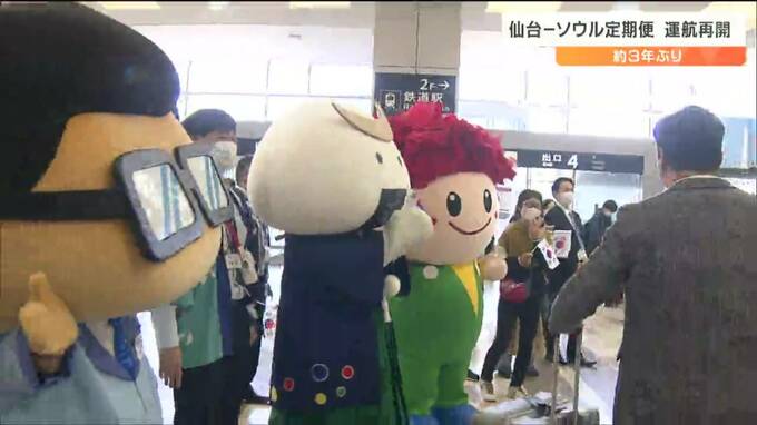 「午前11時47分、ソウルからの定期便が、およそ3年ぶりに仙台空港にやってきました」