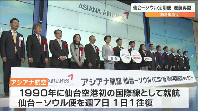 仙台空港では記念セレモニーが行われ、アシアナ航空や空港の関係者などおよそ20人が出席して再開を祝いました。
