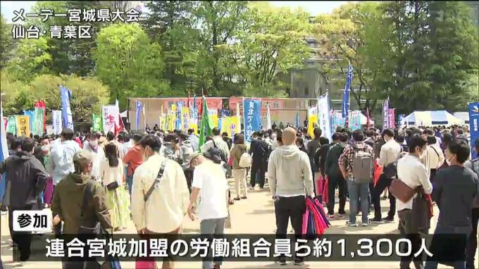 連合宮城が開いたメーデー宮城県大会には、労働組合の組合員らおよそ1300人が参加しました。