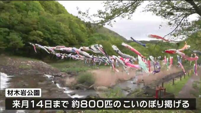 材木岩公園にはおよそ800匹の「こいのぼり」の吹き流しも飾られていて来月14日まで楽しむことができます。