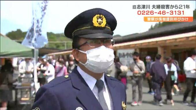 2002年に宮城県の旧志津川町、現在の南三陸町で夫婦が殺害された事件は、未解決のまま3日で21年が経ち、警察は町内の商店街で情報提供を呼びかけました。