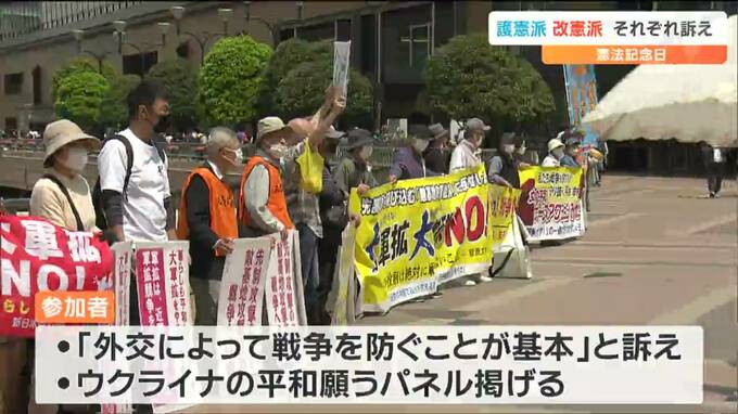 「憲法9条を活かした平和外交」「交戦権認めない憲法は世界中ない」憲法記念日で護憲・改憲訴える 宮城 2023年5月3日(水) 18:20 国内 5月3日は憲法記念日です。宮城県内では、護憲派と改憲派のグループがそれぞれの憲法についての考えを主張しました。みやぎ憲法九条の会 板垣乙未生事務局長:「(ウクライナ侵攻など)国民の皆さんが不安に感じて…
