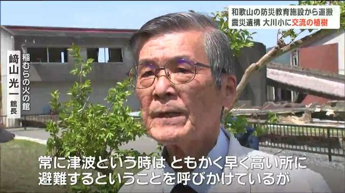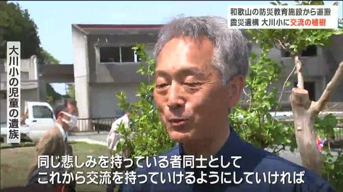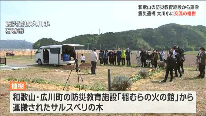 津波被害の教訓をともに伝え続けます。和歌山県の防災教育施設から運び込まれた樹木が4日、宮城県石巻市の震災遺構、大川小学校に植えられました。
